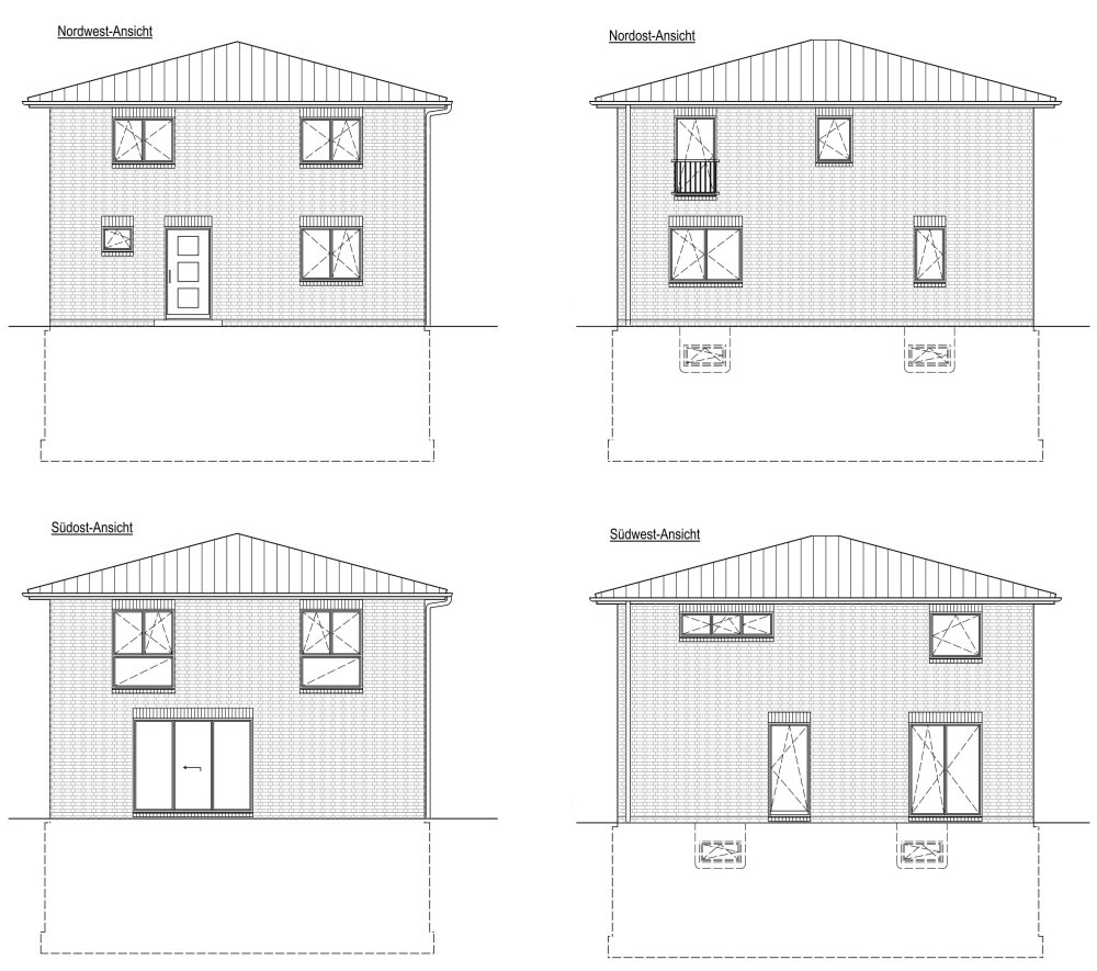 Eingeschossiges Einfamilienhaus mit Walmdach, Klinkerfassade und Vollkeller. Etwa 132 m² Wohnfläche, 5 Wohn- und Schlafzimmer. Erdgeschoss: Entree mit begehbarer Garderobennische, Büro-/Gästezimmer, Duschbad, Wohnküche mit Außentür, Wohnen/Essen mit Fenstern zu allen Seiten, darunter ein großes Schiebeelement. Dachgeschoss: Die Schlafzimmer sind mit mindestens 16 m² üppig geschnitten. Höhere Innentüren, elektrisch betriebene Rollläden. Erhöhung lichte Höhe Kellergeschoss auf 2,50 m. Kellergeschoss: 4 Räume, darunter der Hausanschlussraum.